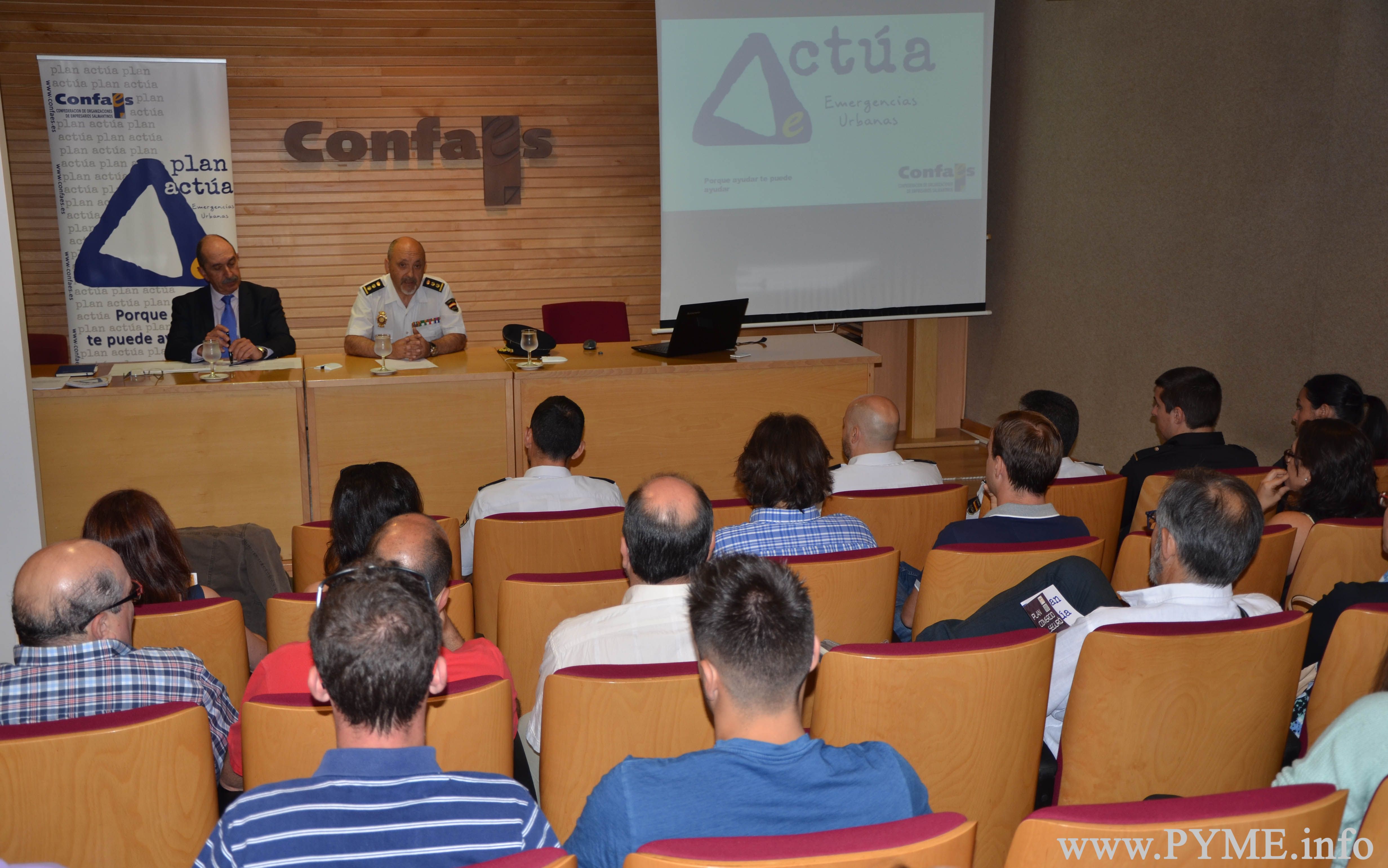 Un comercio seguro beneficia a la ciudad en su conjunto. Esta ha sido la idea central con la que ha concluido “ACTUA: comercio seguro”, la jornada informativa que se ha celebrado hoy dentro de la tercera fase del Plan Actúa de Emergencias Urbanas de CONFAES. Una sesión práctica, que ha contado con la colaboración del Cuerpo Nacional de Policía, en la que se ha mostrado a los empresarios salmantinos de comercio pautas para evitar delitos tan frecuentes en el sector como hurtos, robos, etc.