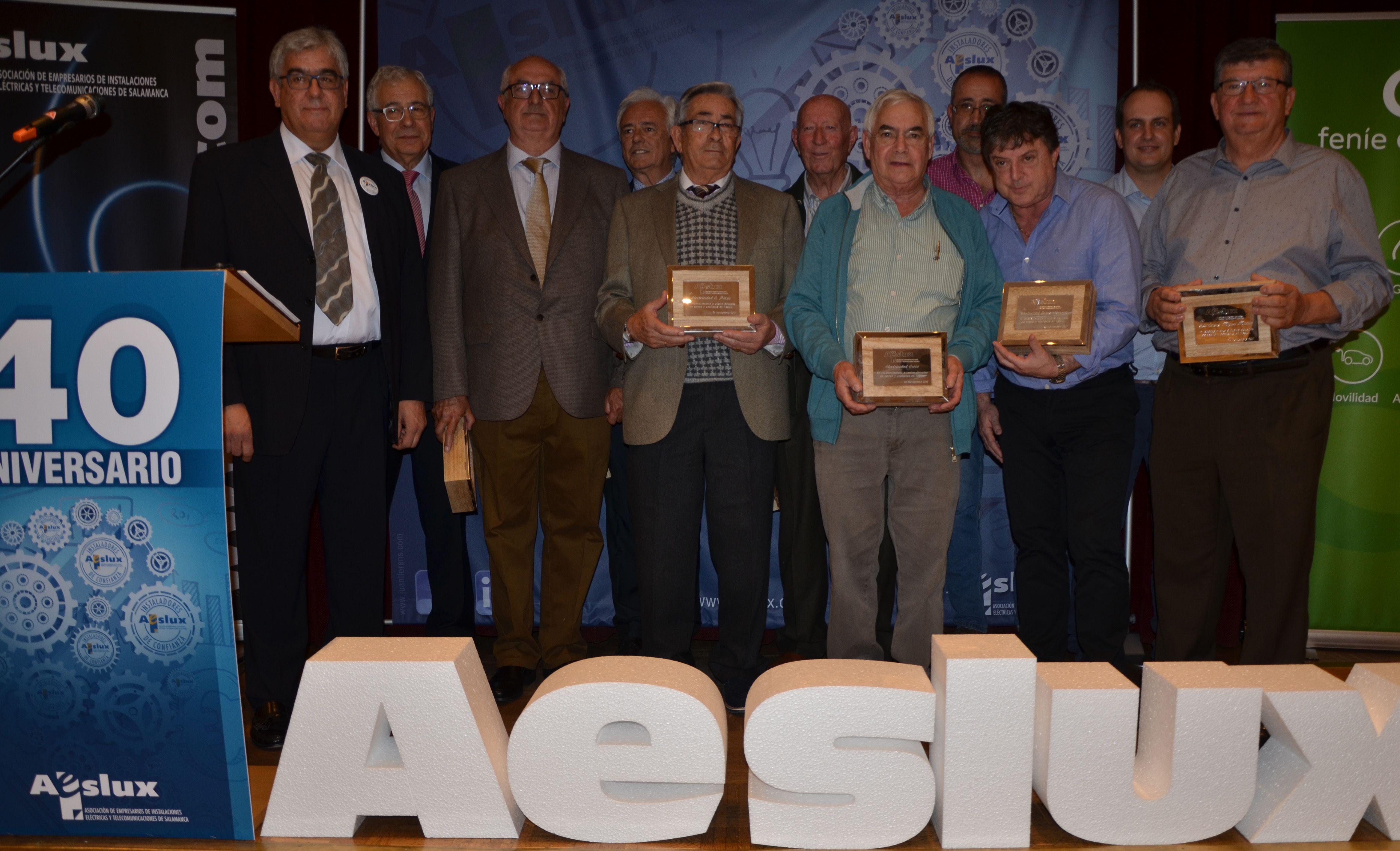 La Asociación de Empresarios de Instalaciones Eléctricas y Telecomunicaciones de Salamanca (AESLUX), integrada en la patronal CONFAES, ha rendido esta noche un homenaje a doce de sus empresas más emblemáticas durante una cena enmarcada dentro de las actividades programadas que celebran el cuarenta aniversario de su fundación en 1977.