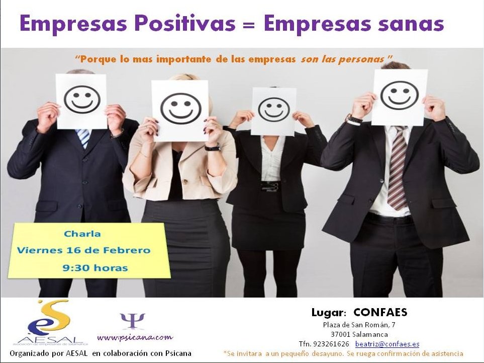 La Asociación de Empresarias de Salamanca (AESAL), integrada en la patronal salmantina CONFAES, prosigue con su programación de actividades trimestrales organizando este viernes 16 de febrero a las 9:30 horas un desayuno de trabajo titulado “Empresas Felices=Empresas Sanas”.