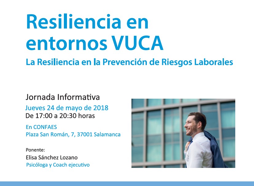 Resilencia, un término cada vez más presente dentro de la cultura empresarial, llega a Salamanca. La también llamada adaptación positiva a situaciones adversas, será el tema central de la jornada ‘Resiliencia en entornos VUCA’, organizada por la Confederación CONFAES junto a la Confederación Empresarial de Orense este jueves, 24 de mayo, desde las 17:00 hasta las 20:00 horas, dentro de las actividades del proyecto Prevenceo, financiado por la Fundación Estatal para la Prevención de Riesgos Laborales
