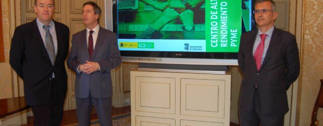 El Presidente de CONFAES, Juan Manuel Sánchez y el secretario general, Bernabé Cascón han asistido esta mañana a la presentación del Centro Municipal de Alto Rendimiento PYMEenmarcado en el convenio de colaboración del Ayuntamiento de Salamanca y EOI, y que cuenta con la colaboración de CONFAES por su conocimiento de las necesidades de las pymes salmantinas.