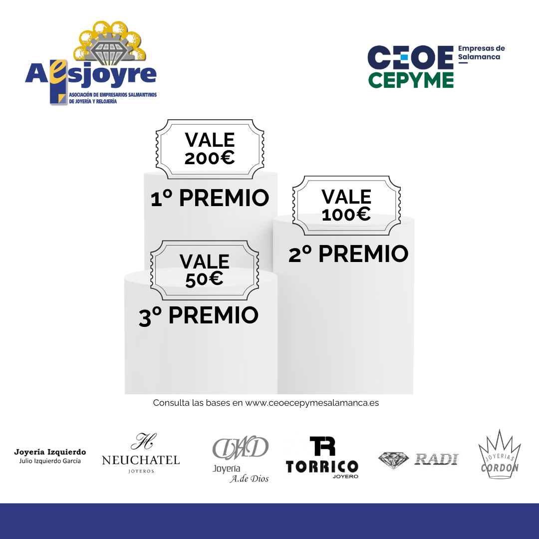 La Asociación de Empresarios Salmantinos de Joyería y Relojería (AESJOYRE), integrada en CEOE CEPYME Salamanca, ha puesto en marcha una campaña navideña dirigida a premiar la fidelidad de los clientes y fomentar las compras en el comercio local. Esta iniciativa, que comenzará hoy y se extenderá hasta el próximo 5 de enero de 2025, ofrece a los clientes la oportunidad de ganar vales de 200€, 100€ y 50€ para gastar en las joyerías participantes.