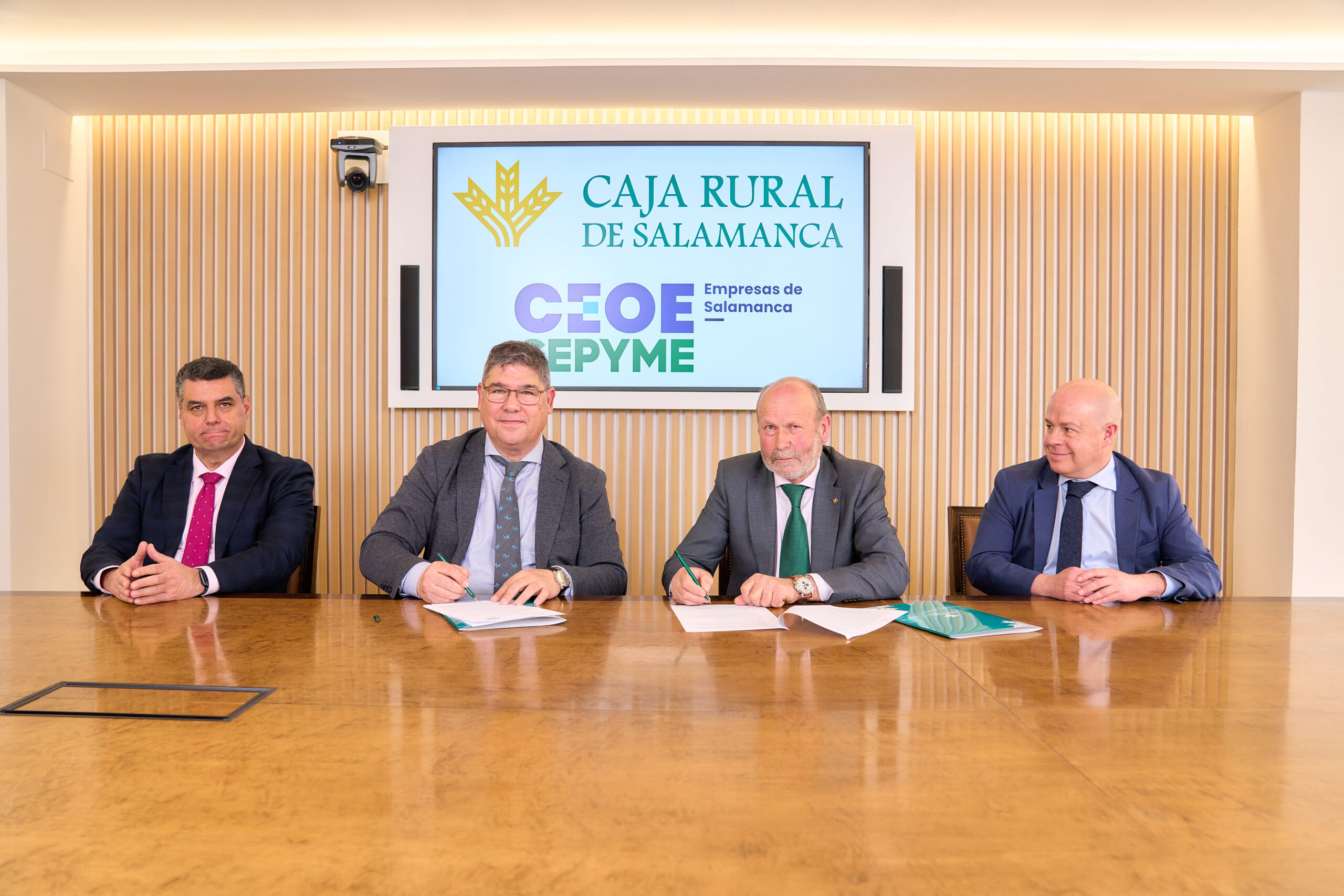 La rúbrica que ha tenido lugar en la sede central de la entidad financiera, ha contado con la presencia de Ernesto Moronta Vicente, Presidente de Caja Rural de Salamanca, y de Paulino Benito Conde, Presidente de CEOE CEPYME Empresas de Salamanca.