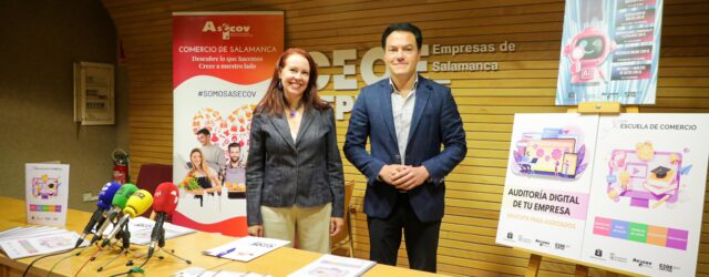 La presidenta de la Asociación de Comercio ASECOV, Soledad Gómez, ha presentado hoy junto al Concejal de Comercio del Ayuntamiento de Salamanca, Pedro Martínez, las nuevas actividades de impulso de la digitalización en el comercio local, con el objetivo de reforzar la competitividad del sector y apoyar su adaptación a los nuevos hábitos de consumo.