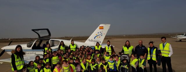Lourdes Losa, capitán del Ejército del Aire y primera mujer en alcanzar la calificación CR3 en un Airbus 310 de las Fuerzas Armadas, ha visitado esta mañana las instalaciones de la Escuela de Pilotos Adventia en el aeropuerto de Salamanca-Matacán.