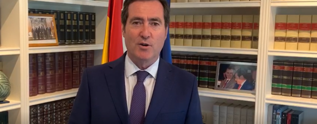 El presidente de la CEOE, Antonio Garamendi, ha enviado un mensaje a los empresarios de Salamanca durante la celebración de la Asamblea General de CONFAES, que en esta ocasión se ha desarrollado de forma telemática, para trasladarles su apoyo ante difícil situación en la que se encuentra el tejido empresarial tras la crisis de la COVID-19.