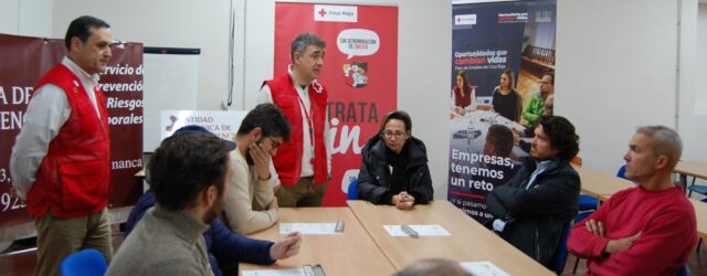 Diversas empresas de construcción de Salamanca junto con la Asociación de Empresarios de la Construcción (AESCON) han visitado el curso de Cruz Roja para ver de primera mano cómo se desarrolla la formación y para conocer la labor de la organización humanitaria que busca favorecer las oportunidades laborales y generar sinergias con las empresas para satisfacer la demanda de empleo.