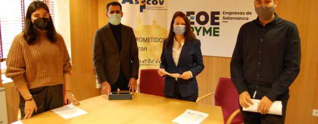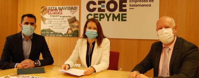 La Asociación de Comercio ASECOV y el Ayuntamiento de Salamanca han presentado esta mañana la campaña de Navidad de los comerciantes asociados a CEOE-CEPYME Salamanca, en la que se ha invitado a los salmantinos a que “regalen Salamanca”, a través de sus compras de Navidad en el sector local.