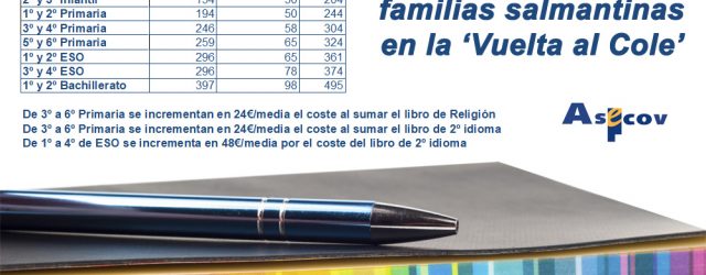 Aunque quede más de un mes para la denominada ‘Vuelta al Cole’, las familias salmantinas ya comienzan a preparar las primeras compras de material escolar y libros de texto. El nuevo curso, que dará comienzo el día 11 en Infantil, Primaria y ESO y el 18 de septiembre para Bachillerato, supondrá un gasto medio de 304 euros. Sigue leyendo